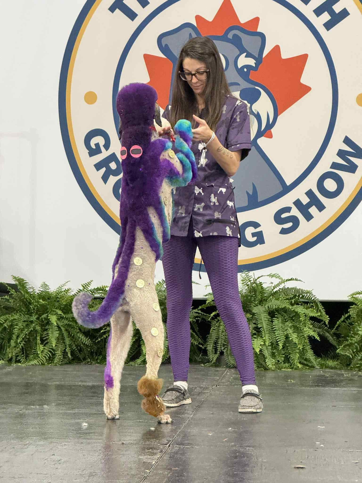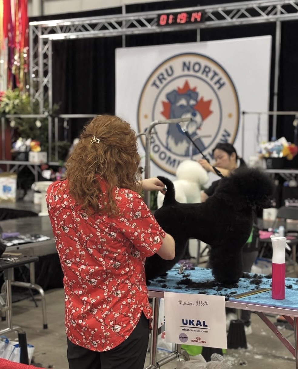 She was a competitive dog groomer and showed her own dogs in the AKC ring, but found the most enriching experiences to be ringside and in the set-ups amongst friends. She left the competition ring as a competitor to be the ring announcer for Barkleigh Productions.